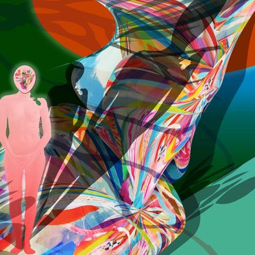 My approach to digital art has been to use photos of my handmade collages as elements, modify them then combine them with found photos. I often turn photos of artworks into colorful psychedelic shapes using digital software, leaving only parts of the original work intact.